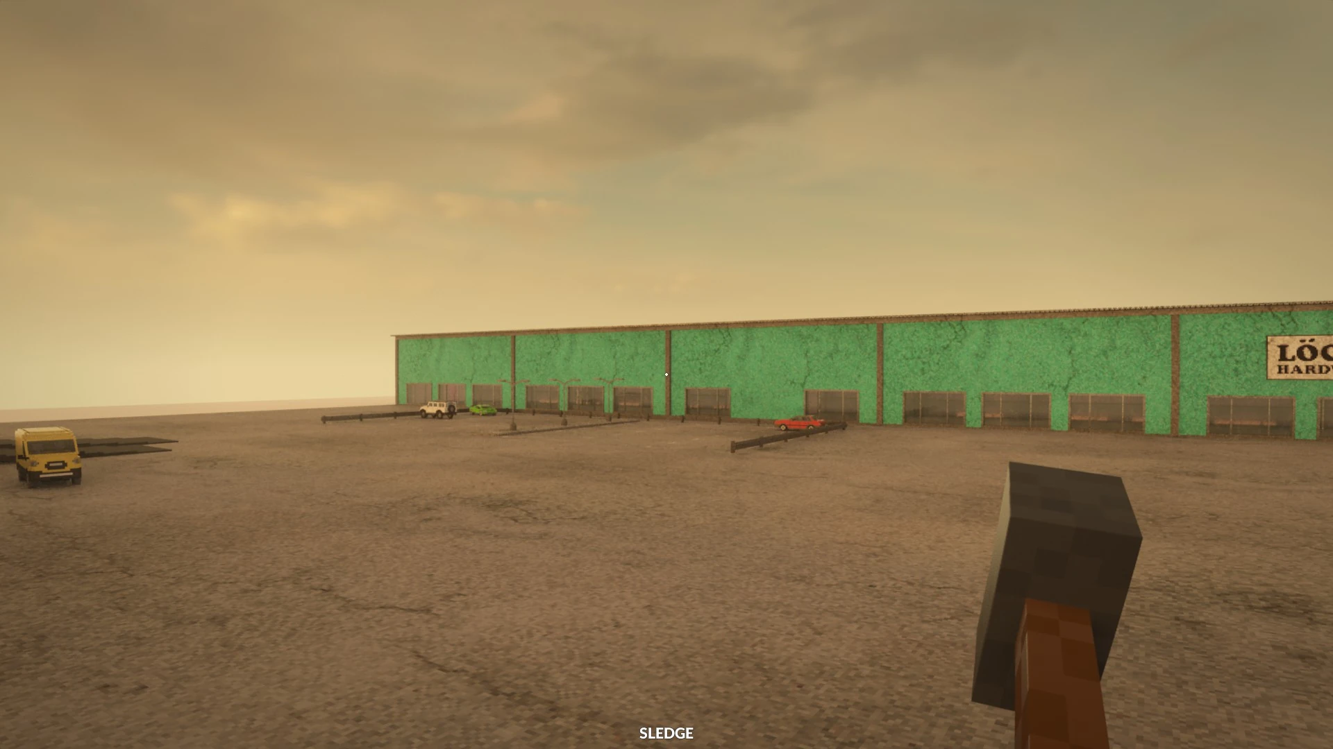 The Löckelle Hardware Store is Vehicle's only building. It is a large green store split into multiple districts, built from what seems to be concrete. There is a large sign on the right of the building, reading "LÖCKELLE HARDWARE STORE" on the front. There are several glass entrances (Only one of which is already open) on the front of the building, each of which are closed. There is only one open entrance into the building (The one right under the hardware store sign) allowing for entry into the store.